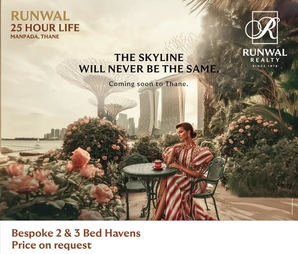 Runwal 25 Hour Life by Runwal Group is a large integrated residential township in Manpada, Thane West, Mumbai. Spread across 21–22 acres with 4.5 acres of central open spaces, the development will have 9 towers (2B+G+4P+50 floors) offering premium 1, 2, and 3 BHK Vaastu-compliant residences, and is designed for an elevated lifestyle with 50+ modern amenities and exceptional connectivity.